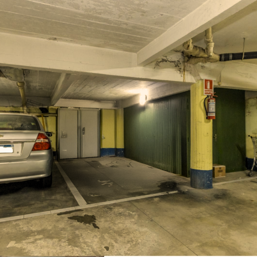Espacio de garaje de cómoda maniobrabilidad y buen tamaño equipado con doble placard al fondo.