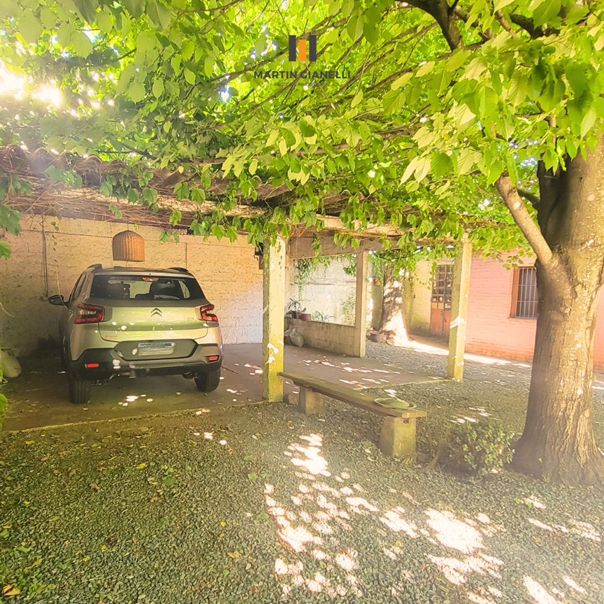 La misma se desarrolla en un padrón único, con un gran frente enjardinado, reja perimetral con portón automático y cochera para 2 autos. un portón divide el terreno en frente y fondo dando privacidad al fondo, a las cocheras techadas y a la casa secundaria.